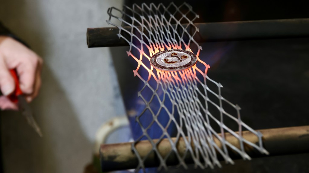 SS: Right. Ours was the finishing department, which is at the last. The first one is, you know, where the actual medals and all are designed as a design department. From there, it comes back to the press shop where the actual medals are made, a stamped and all. And then they come to our side, which is silversmiths. Silversmiths actually do the final work before it comes to the finishing. And finishing is where we do polishing, electroplating or oxidizing. That is, bronzing, silver oxidize and electro lacquering things like that. So basically, once it’s finished in our place, it goes to the production work where it’s certified and then checked and then sent away.