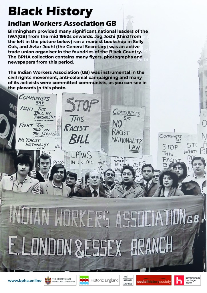 The Birmingham People’s History Archive, in conjunction with the Social History Society and BRiG collaborated on a celebratory event which featured a video presentation, talks from BPHA Director Katherine Cremer and BRiG Director Jag Johal on the life of Avtar Jouhl, with plenty of audience participation. The event brought together academics, activists, historians and researchers, many of whom were excited to discover the archive and learn more about the history of Avtar and the IWA. The meeting also displayed a number of new information boards showcasing important aspects of the history of Avtar, the IWA(GB) and the collection held here at the BPHA.
