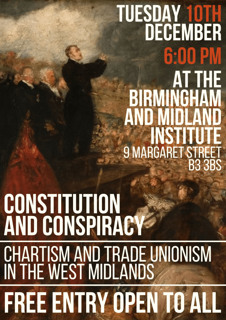 Tuesday 10th December 2024 at 6 PM – Constitution and Conspiracy: Chartism and Trade Unionism in the West Midlands