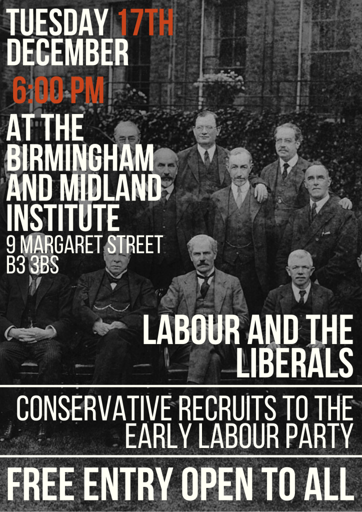 Tuesday 17th December 2024 at 6 PM – Labour and the Liberals: Conservative recruits to the early Labour Party